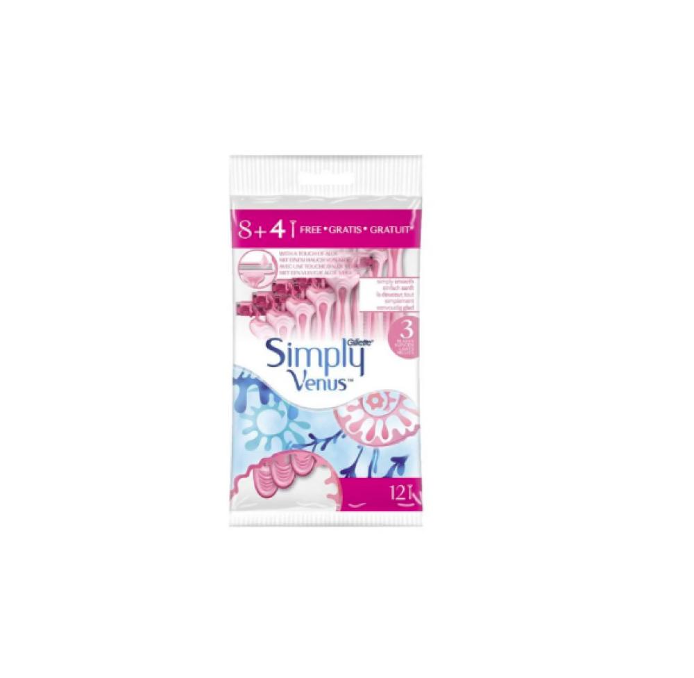 عبوة شفرات سيمبلي 3 للاستخدام مرة واحدة للنساء من جيليت 12حبة :