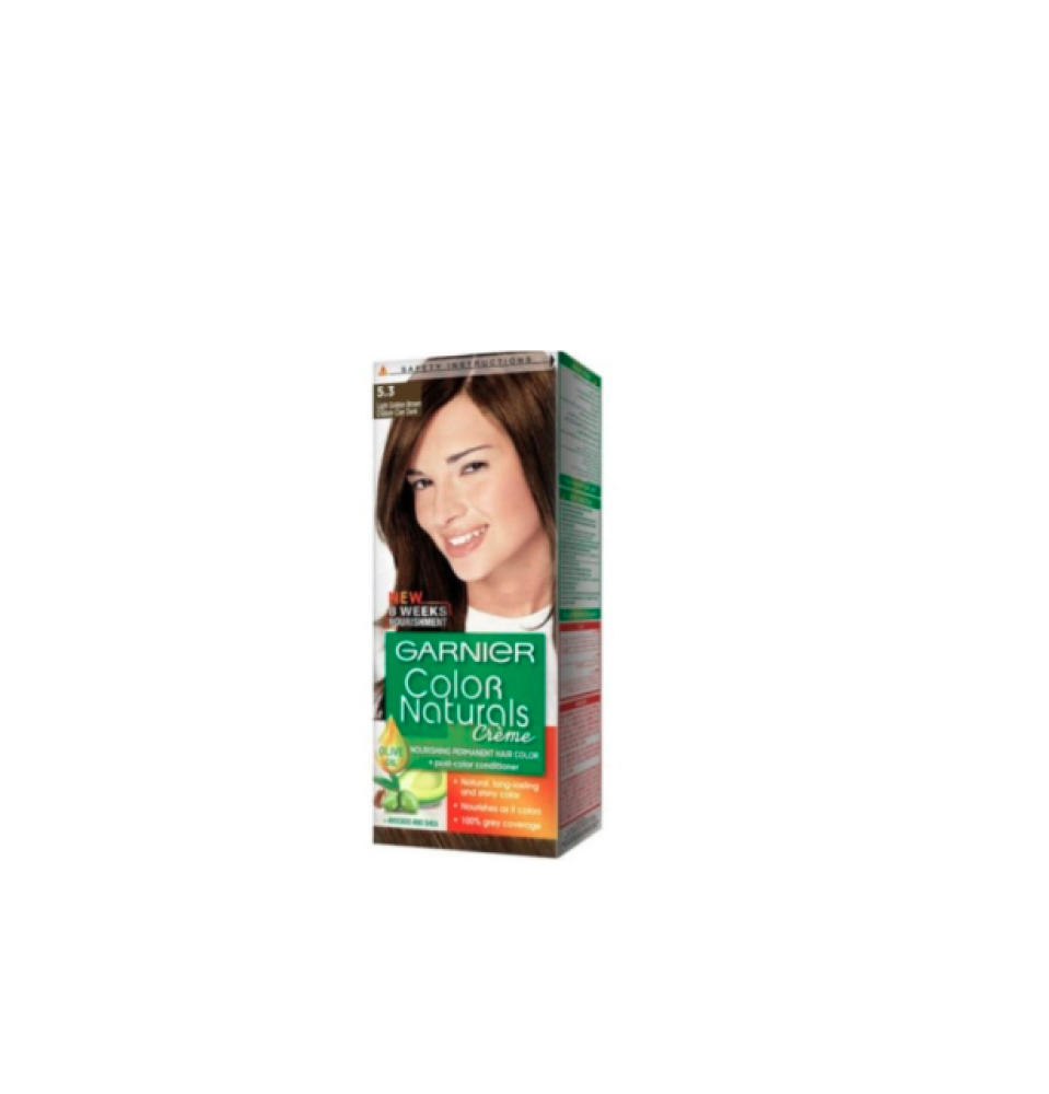 صبغة كولور ناتشرلز دائمه و مغذية للشعرمع بلسم بني فاتح ذهبي 5.3من غارنيير: لون طبيعي لامع يدوم طويلا ضد انعكاسات النحاسيه يغذي الشعر عند الصبغة ول8 أسابيع تغطية كامله للشعر الأبيض